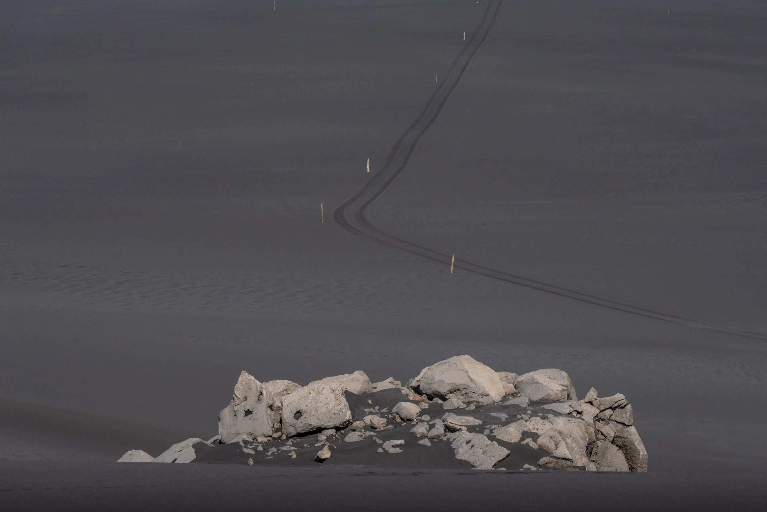 Fotografen har fint fångat de geometriska formerna som det mjuka ljuset tillsammans med berget och vattenpölarna och havet formar. En fin komposition.